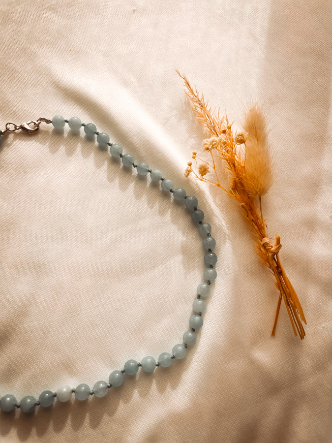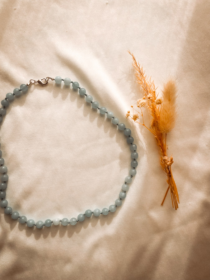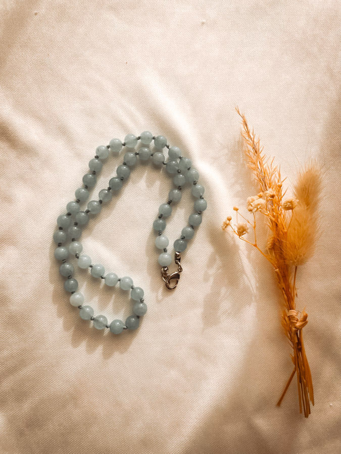 Ce collier ras-du-cou en agate bleue est une pièce élégante, conçue pour être portée au quotidien ou lors de moments de méditation. En l’ayant près du cœur, tu profites de l’énergie apaisante de la pierre et invites la sérénité dans ta vie. Sa couleur douce et son éclat naturel apportent une touche d’élégance discrète tout en ayant une forte valeur symbolique.